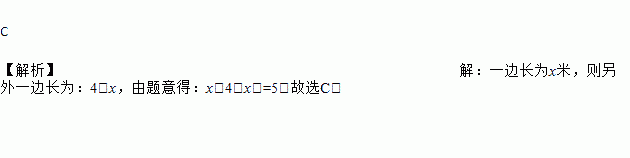 A. x(8﹣x)=5 B. x(4+x)=5 C. x(4﹣x)=5 D. x(8﹣2x)=5