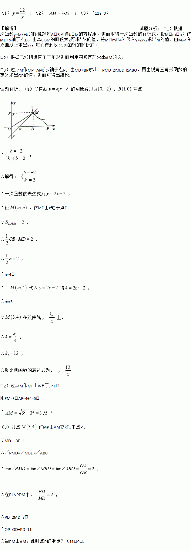 (3)P是x轴上一点,当AM⊥PM时,求出点P的坐标.