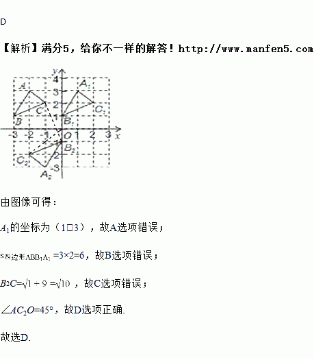 △ABC在如图所示的平面直角坐标系中,将△ABC向右平移3个单位长度后得△A1B1C1,再将△A1B1C1绕点O旋转180°后得到△A2B2C2.则下列说法正确的是( )