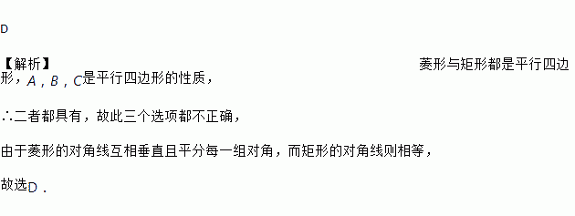A. 对角线互相平分 B. 对角线相等 C. 对角线互相垂直 D. 对角线平分对角