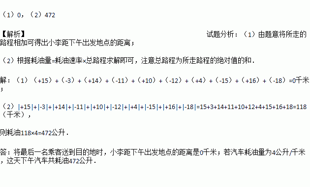 (2)若每千米耗油4升,这天下午共耗油多少升?