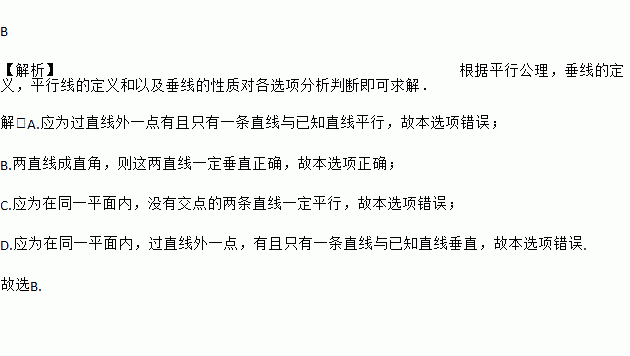 D. 过直线外一点,有且只有一条直线与已知直线垂直