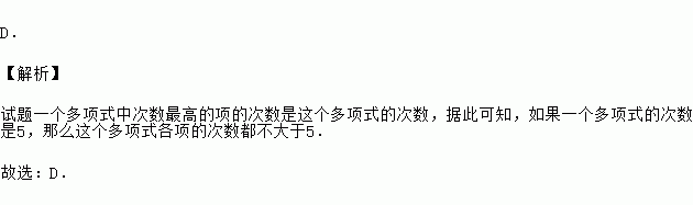 如果一个多项式的次数是5,那么这个多项式各项的次数( ).