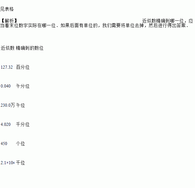 近似数精确到( )