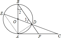 如图,已知AB是⊙0的直径,AC切⊙O于点A,连接CO并延长交⊙0于点D、E,连接BD并延长交边AC于点F.