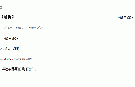 如图,AB∥CD,AD∥BC,则图中与∠A相等的角有_____个.
