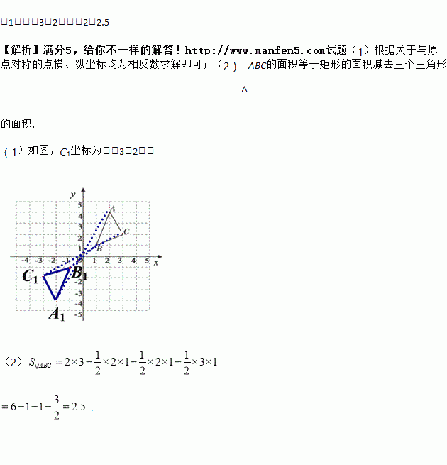 (1)作出△ABC关于原点O对称的△A1B1C1,并写出点C1的坐标;