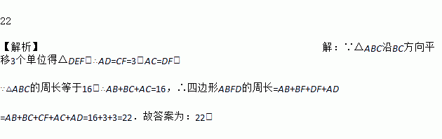 如图,将周长为16的三角形 沿 方向平移3个单位得到三角形 ,则四边形 的周长等于 ________.
