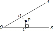 分析:首先过点P作PD⊥OA于D,由点P为∠AOB的角平分线上一点,PC⊥OB,PC=2,根据角平分线的性质,即可求得点P到OA的距离.