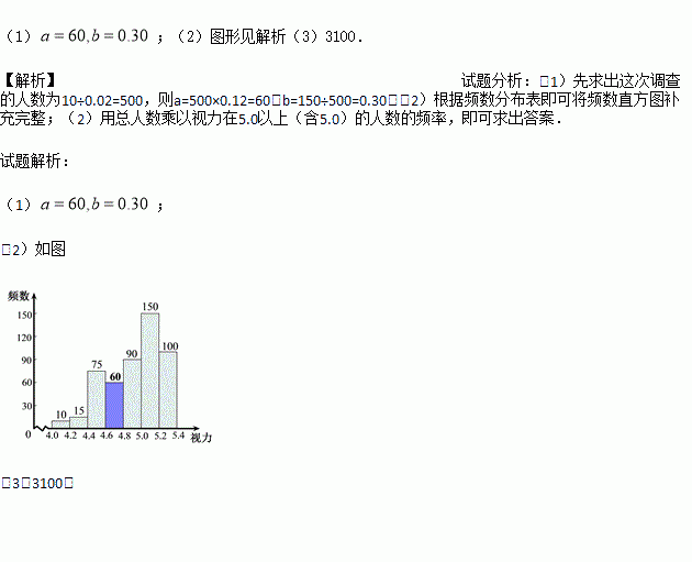 的视力进行了一次抽样调查,经数据分组整理,绘制的频数分布表与频数分布直方图的一部分如下(每组含前一个边界值,不含后一个边界值):