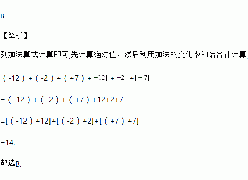 三个数-12,-2,+7的和加上它们的绝对值的和为( )