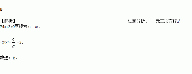 已知一元二次方程-4x +3=0两根为x1、x2,则x1•x2=( )