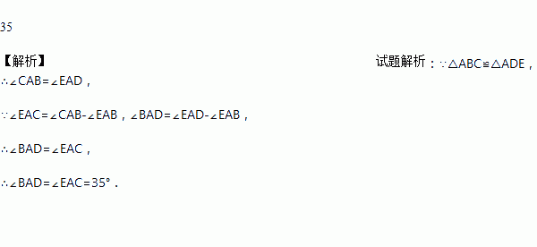 如图,若△ABC≌△ADE,∠EAC=35°,则∠BAD=______°