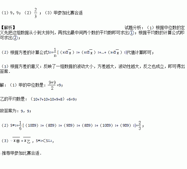 甲 | 10 | 8 | 9 | 8 | 10 | 9 | 9 | ① |
