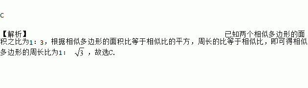 两个相似多边形的面积之比为1:3,则它们周长之比为