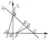 【答案】分析:(1)因为l1过点B,所以代入直线l1的解析式求得点B的坐标,又因为直线l2经过B,C两点,所以将点B、C的坐标代入直线y=kx+b,列方程组即可求得;