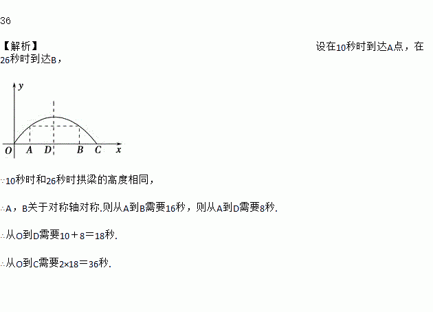 .小强骑自行车从拱梁一端O沿直线匀速穿过拱梁部分的桥面OC,当小强骑自行车行驶10秒时和26秒时拱梁的高度相同,则小强骑自行车通过拱梁部分的桥面OC共需__________秒.