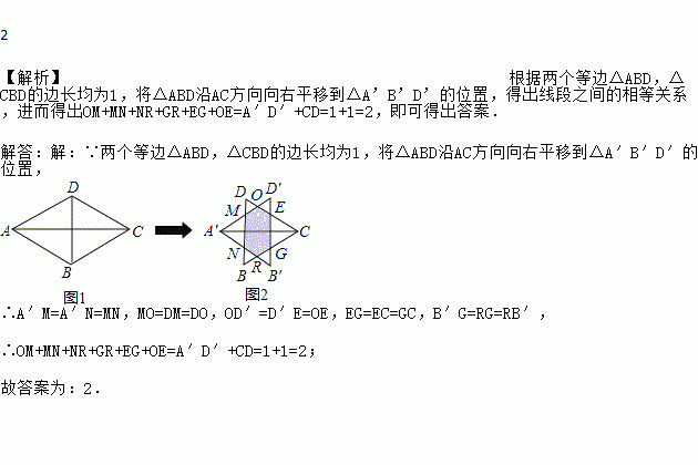 如图8中图①,两个等边△ABD,△CBD的边长均为1,将△ABD沿AC方向向
