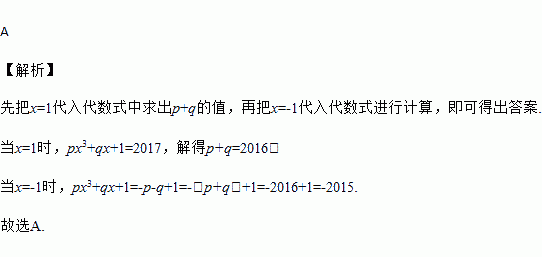 当x=1,px3+qx+1的值为2017,那么当x=-1,px3+qx+1的值为( )