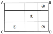 一个大长方形ABCD按如图方式分割成九个四边形,且只有标号为①和②的两个正好为正方形,其余均为长方形.若已知小正方形①的周长为12,小长方形③的周长为2m,小长方形④的周长为2n,且3(m+n)+mn=61,这个大长方形ABCD的面积( )