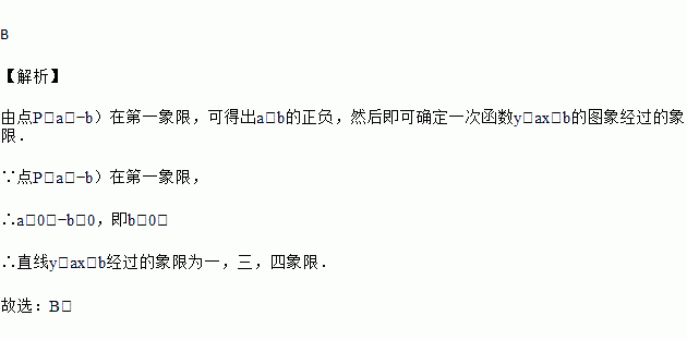 已知点P(a,-b)在第一象限,则直线y=ax+b经过的象限为 ( )