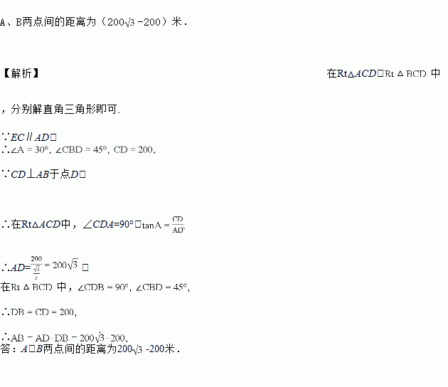 两点间的距离为多少米?(结果保留根号)![]()