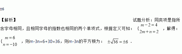 已知﹣2xm﹣2y2与3x4y2m+n是同类项,则m﹣3n的平方根是_____.
