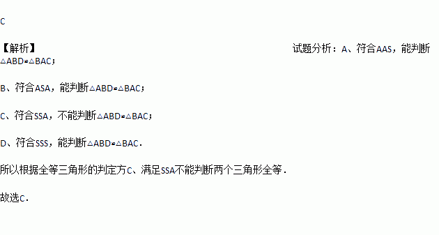 如图所示,在下列条件中,不能判断△ABD≌△BAC的条件是( )