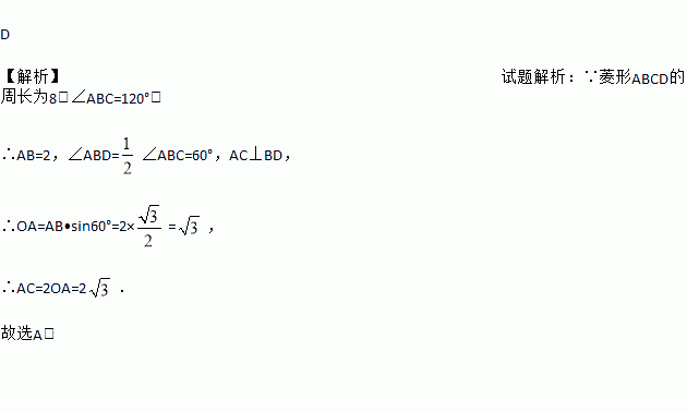 如图,菱形的周长为8, ,则的长为( ).