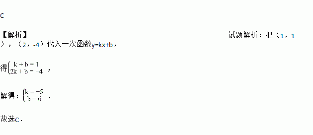 一次函数y=kx+b,经过(1,1),(2,-4),则k与b的值为( )