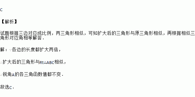 在Rt△ABC中,各边的长度都扩大两倍,那么锐角A的各三角函数值( )