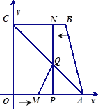 如图, 四边形OABC为直角梯形,A(4,0),B(3,4),C(0,4). 点M从O 出发以每秒2个单位长度的速度向A运动;点N从B同时出发,以每秒1个单位长度的速度向C运动.其中一个动点到达终点时,另一个动点也随之停止运动.过点N作NP垂直轴于点P,连结AC交NP于Q,连结MQ.