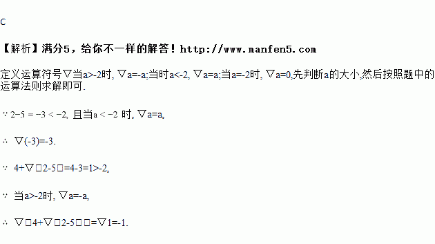 已知a为有理数,定义运算符号▽:当a>-2时,▽a=-a;当a<-2时,▽a=a;当a=-2时,▽a=0.根据这种运算,计算▽[4+▽(2-5)]的值为( )