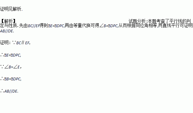 已知:BC//EF,∠B=∠E,求证:AB//DE.