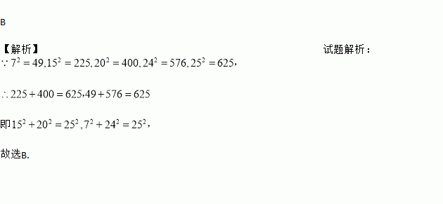 给出长度分别为7cm,15cm,20cm,24cm,25cm的五根木棒,分别取其中的三根首尾连接,最多可以搭成的直角三角形的个数为( )