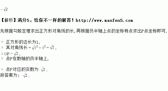 如图,以数轴的原点为圆心,正方形对角线的长为半径画弧交数轴于点,则点对应的实数为________.