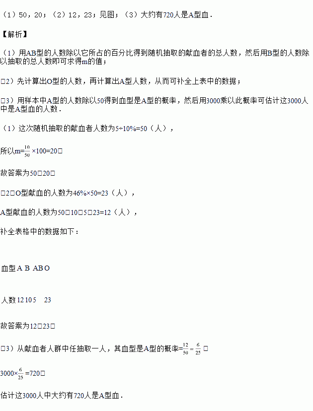 (1)这次随机抽取的献血者人数为 人,m= ;