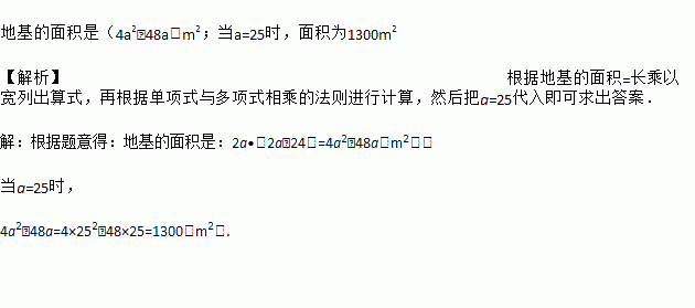 某中学扩建教学楼,测量地基时,量得地基长为2a m,宽为(2a﹣24)m,试用a表示地基的面积,并计算当a=25时地基的面积.