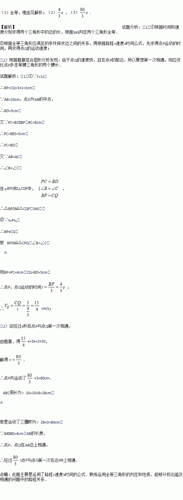 (1)如果点P在线段BC上以3cm/s的速度由B点向C点运动,同时,点Q在线段CA上由C点向A点运动.