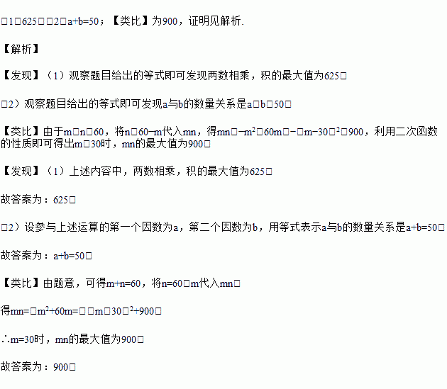 (类比)观察下列两数的积:1×59,2×58,3×57,4×56,…,m×n,…,56×4,57×3,58×2,59×1.