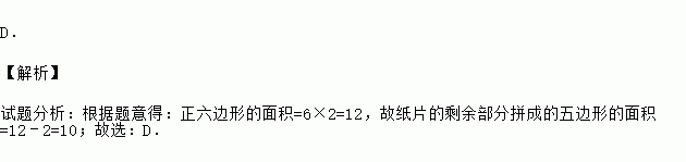 如图,在一张正六边形纸片中剪下两个全等的直角三角形(阴影部分),拼成一个四边形,若拼成的四边形的面积为2,则纸片的剩余部分拼成的五边形的面积为( )