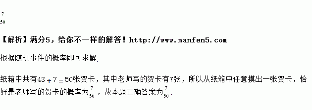 元旦晚会上,九年级班名同学和名老师每人写了一张同种型号的新年贺卡,放进一个纸箱里充分摇匀后,小红从纸箱里任意摸出一张贺卡,恰好是老师写的贺卡的概率是________.