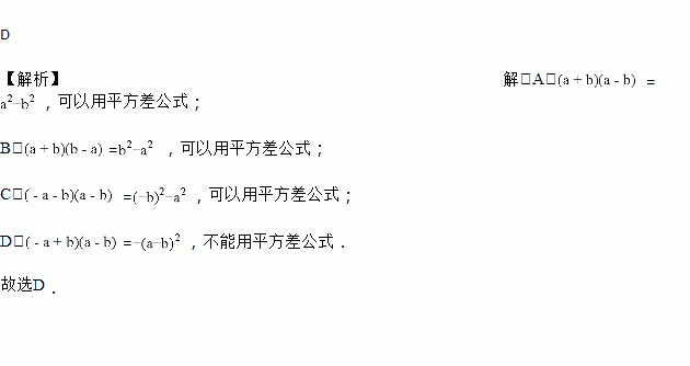 下列多项式乘法中不能用平方差公式计算的是 ( )
