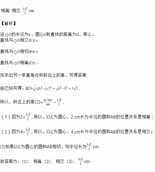 (1)以C为圆心,2 cm长为半径的圆和AB的位置关系是_________;