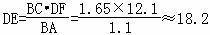 在一次数学活动课上,李老师带领学生去测教学楼的高度.在阳光下,测得身高1.65米的黄丽同学BC的影长BA为1.1米,与此同时,测得教学楼DE的影长DF为12.1米.