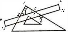 把一块直尺与一块三角板如图放置,若∠1=45°,则∠2的度数为( )![]()
