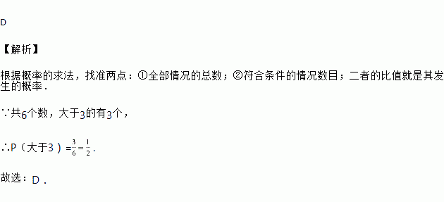 如图,任意转动正六边形转盘一次,当转盘停止转动时,指针指向大于3的数的概率是( )