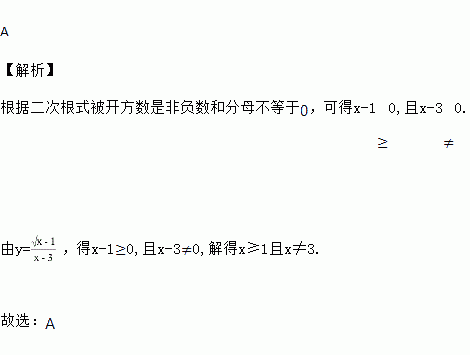 A. x≥1且x≠3 B. x≥1 C. x≠3 D. x>1且x≠3