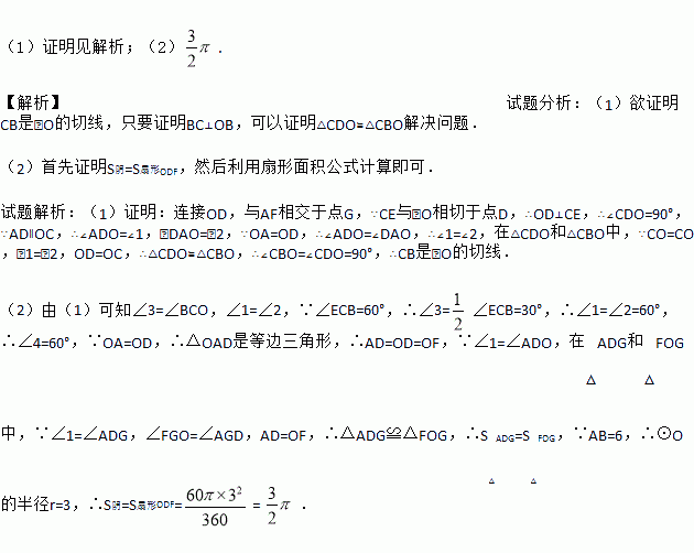 (2)若∠ECB=60°,AB=6,求图中阴影部分的面积.