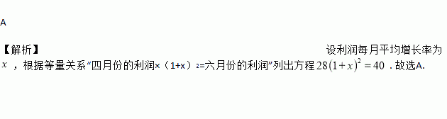 某商场四月份的利润为28万元,预计六月份的利润将达到40万元,设利润每月平均增长率为,那么根据题意所列方程正确的是( )